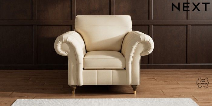 6.12.1 Buy Gosford Button Arm Leather Armchair Turin Leather Light Natural Modern Turned Metal Cap - Mid from the Next UK online shop Click here to use our accessible website