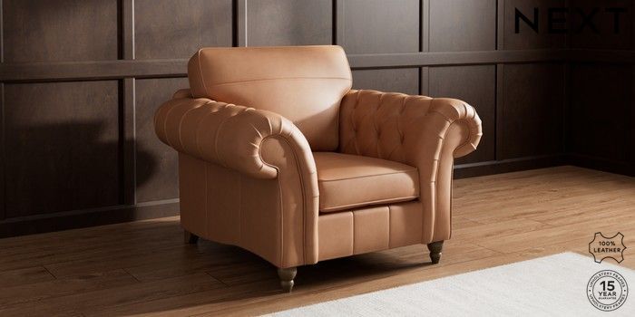 7.0.3 Buy Gosford Button Arm Leather Armchair Turin Leather Tan Brown Low Turned - Mid from the Next UK online shop Click here to use our accessible website