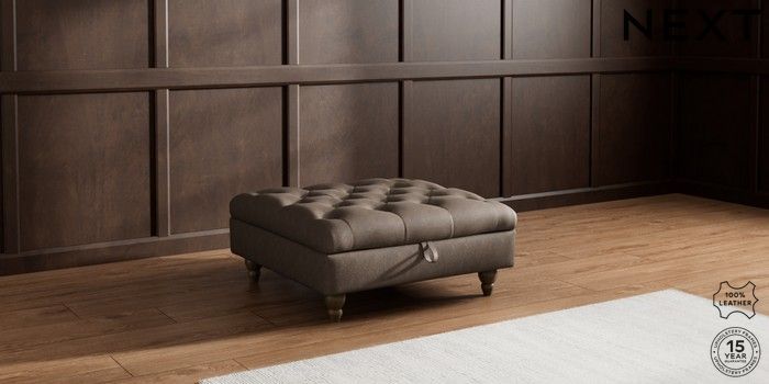 7.0.3 Buy Gosford Button Arm Leather Extra Large Storage Footstool Antiqued Leather Dark Brown Low Turned - Mid from the Next UK online shop Click here to use our accessible website