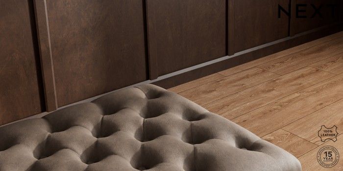7.0.3 Buy Gosford Button Arm Leather Extra Large Storage Footstool Antiqued Leather Dark Brown Modern Turned Metal Cap - Mid from the Next UK online shop Click here to use our accessible website