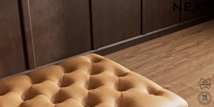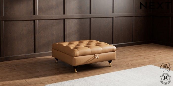7.0.3 Buy Gosford Button Arm Leather Extra Large Storage Footstool Antiqued Leather Light Tan Brown Castor - Dark from the Next UK online shop Click here to use our accessible website