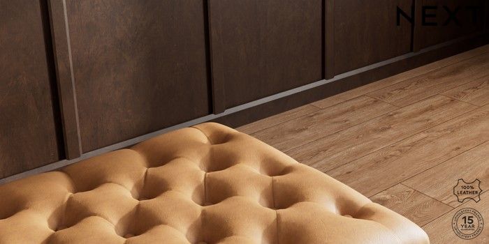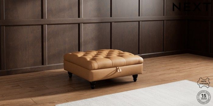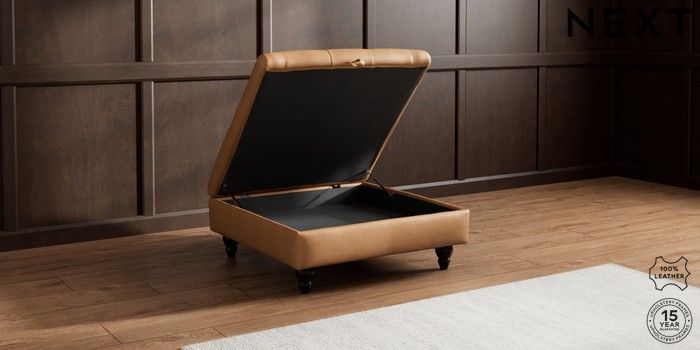 7.0.3 Buy Gosford Button Arm Leather Extra Large Storage Footstool Antiqued Leather Light Tan Brown Low Turned - Dark from the Next UK online shop Click here to use our accessible website