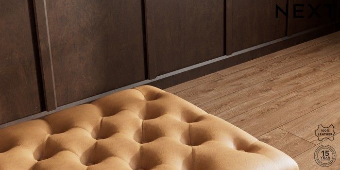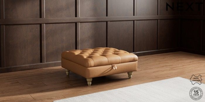7.0.3 Buy Gosford Button Arm Leather Extra Large Storage Footstool Antiqued Leather Light Tan Brown Low Turned - Light from the Next UK online shop Click here to use our accessible website