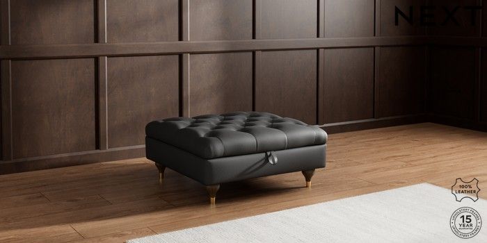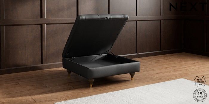 7.0.3 Buy Gosford Button Arm Leather Extra Large Storage Footstool Columbia Black Modern Turned Metal Cap - Mid from the Next UK online shop Click here to use our accessible website
