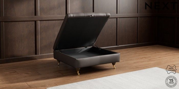 7.0.3 Buy Gosford Button Arm Leather Extra Large Storage Footstool Columbia Dark Brown Castor - Mid from the Next UK online shop Click here to use our accessible website