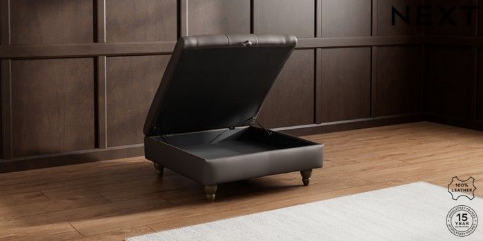 7.0.3 Buy Gosford Button Arm Leather Extra Large Storage Footstool Columbia Dark Brown Low Turned - Mid from the Next UK online shop Click here to use our accessible website