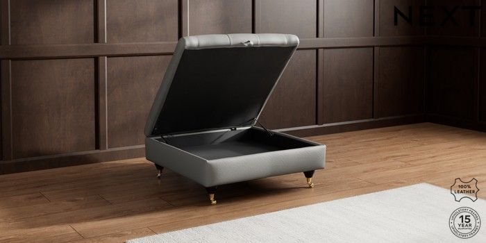 7.0.3 Buy Gosford Button Arm Leather Extra Large Storage Footstool Columbia French Grey Castor - Dark from the Next UK online shop Click here to use our accessible website