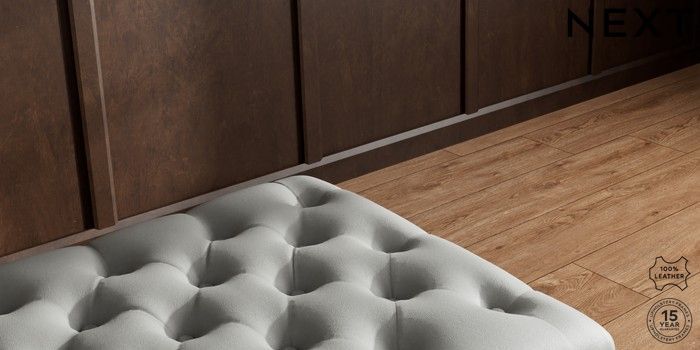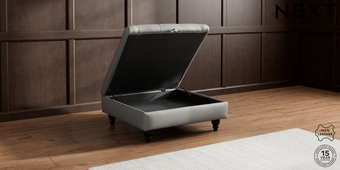 7.0.3 Buy Gosford Button Arm Leather Extra Large Storage Footstool Columbia French Grey Low Turned - Dark from the Next UK online shop Click here to use our accessible website