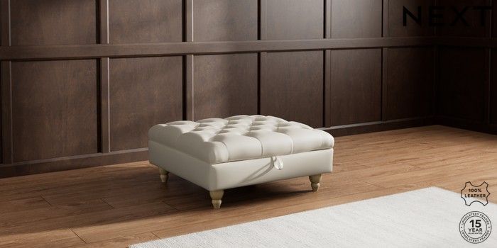 7.0.3 Buy Gosford Button Arm Leather Extra Large Storage Footstool Columbia Silver Grey Low Turned - Light from the Next UK online shop Click here to use our accessible website