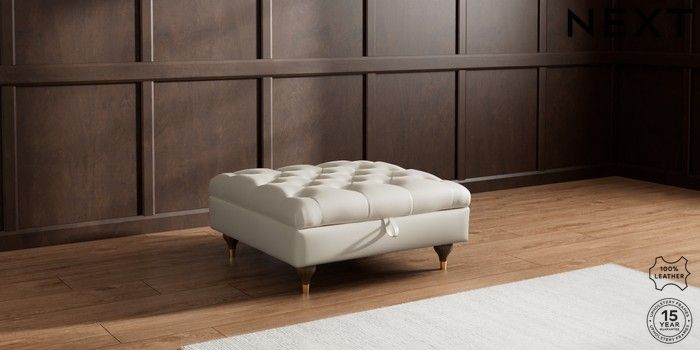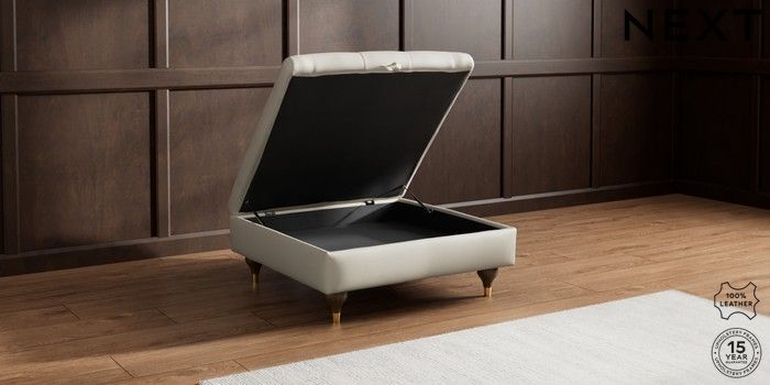 7.0.3 Buy Gosford Button Arm Leather Extra Large Storage Footstool Columbia Silver Grey Modern Turned Metal Cap - Mid from the Next UK online shop Click here to use our accessible website