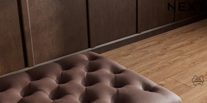 6.12.1 Buy Gosford Button Arm Leather Extra Large Storage Footstool Rustic Leather Dark Brown Castor - Mid from the Next UK online shop Click here to use our accessible website