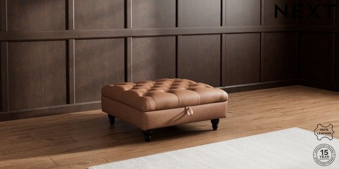 7.0.3 Buy Gosford Button Arm Leather Extra Large Storage Footstool Rustic Leather Light Brown Low Turned - Dark from the Next UK online shop Click here to use our accessible website