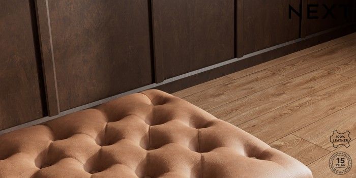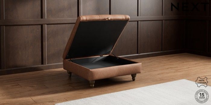 7.0.3 Buy Gosford Button Arm Leather Extra Large Storage Footstool Rustic Leather Light Brown Low Turned - Mid from the Next UK online shop Click here to use our accessible website