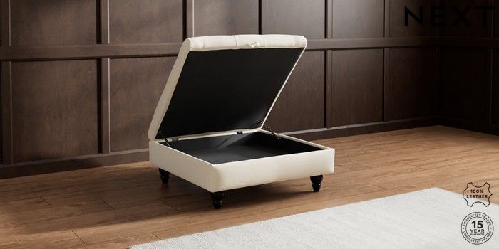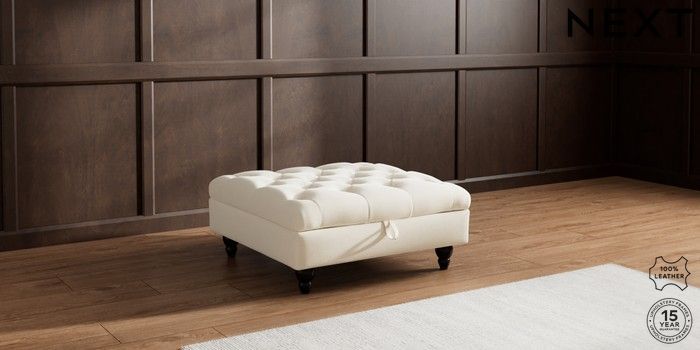 7.0.3 Buy Gosford Button Arm Leather Extra Large Storage Footstool Turin Leather Cream Low Turned - Dark from the Next UK online shop Click here to use our accessible website
