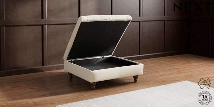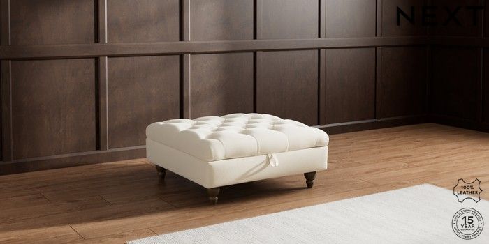 7.0.3 Buy Gosford Button Arm Leather Extra Large Storage Footstool Turin Leather Cream Low Turned - Mid from the Next UK online shop Click here to use our accessible website