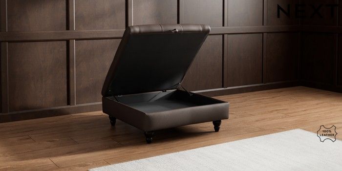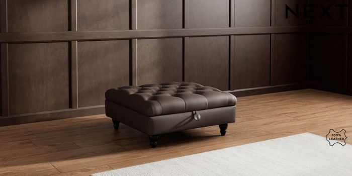 6.12.1 Buy Gosford Button Arm Leather Extra Large Storage Footstool Turin Leather Dark Brown Low Turned - Dark from the Next UK online shop Click here to use our accessible website