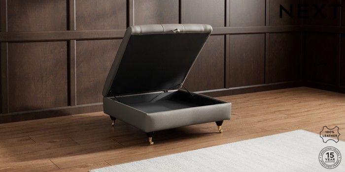 7.0.3 Buy Gosford Button Arm Leather Extra Large Storage Footstool Turin Leather French Grey Castor - Dark from the Next UK online shop Click here to use our accessible website