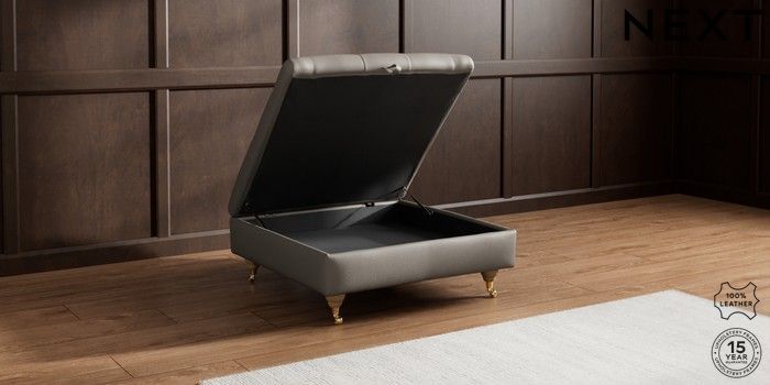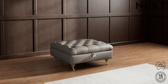 7.0.3 Buy Gosford Button Arm Leather Extra Large Storage Footstool Turin Leather French Grey Castor - Light from the Next UK online shop Click here to use our accessible website