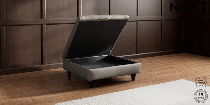 7.0.3 Buy Gosford Button Arm Leather Extra Large Storage Footstool Turin Leather French Grey Low Turned - Dark from the Next UK online shop Click here to use our accessible website