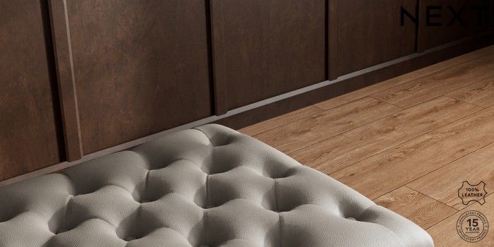 7.0.3 Buy Gosford Button Arm Leather Extra Large Storage Footstool Turin Leather French Grey Low Turned - Mid from the Next UK online shop Click here to use our accessible website