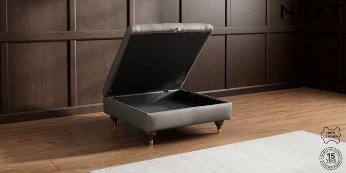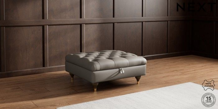 7.0.3 Buy Gosford Button Arm Leather Extra Large Storage Footstool Turin Leather French Grey Modern Turned Metal Cap - Mid from the Next UK online shop Click here to use our accessible website