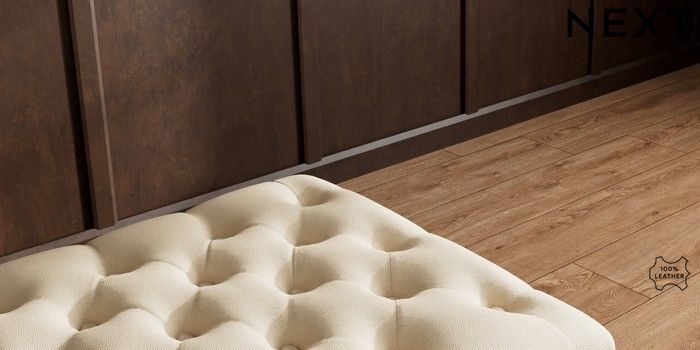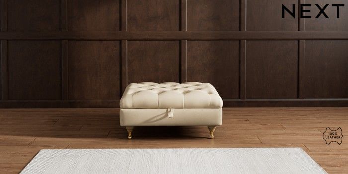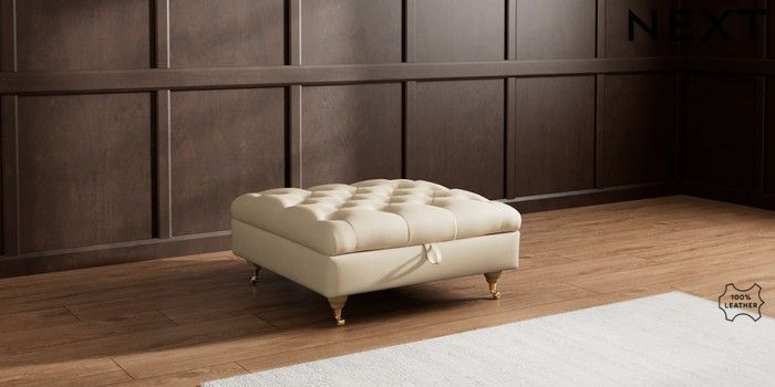 6.12.1 Buy Gosford Button Arm Leather Extra Large Storage Footstool Turin Leather Light Natural Castor - Light from the Next UK online shop Click here to use our accessible website