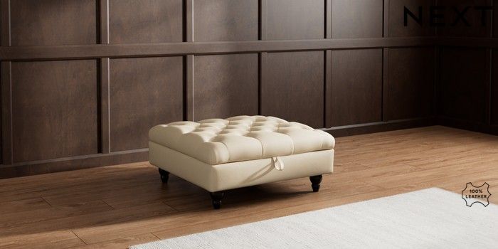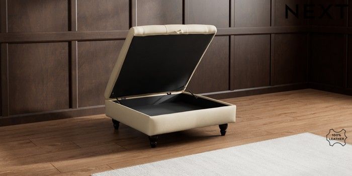 6.12.1 Buy Gosford Button Arm Leather Extra Large Storage Footstool Turin Leather Light Natural Low Turned - Dark from the Next UK online shop Click here to use our accessible website