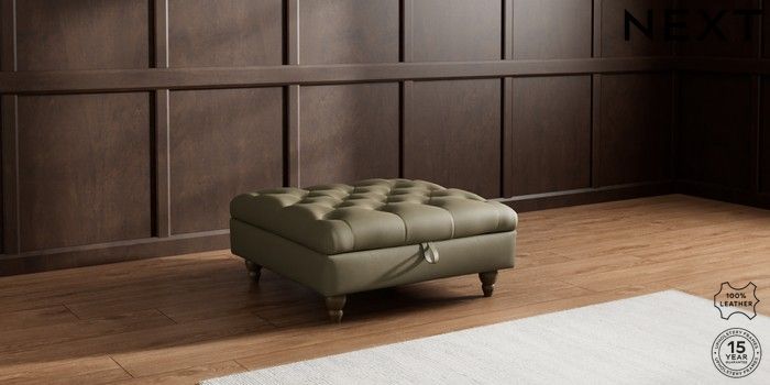 7.0.3 Buy Gosford Button Arm Leather Extra Large Storage Footstool Turin Leather Moss Green Low Turned - Mid from the Next UK online shop Click here to use our accessible website