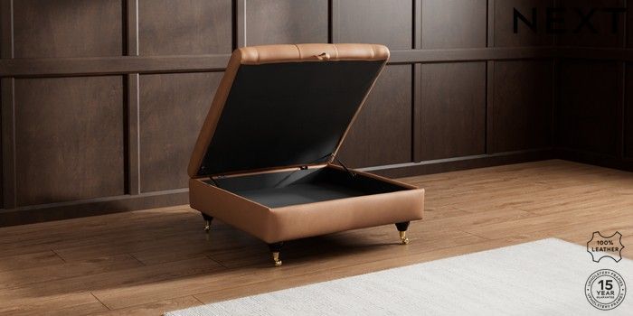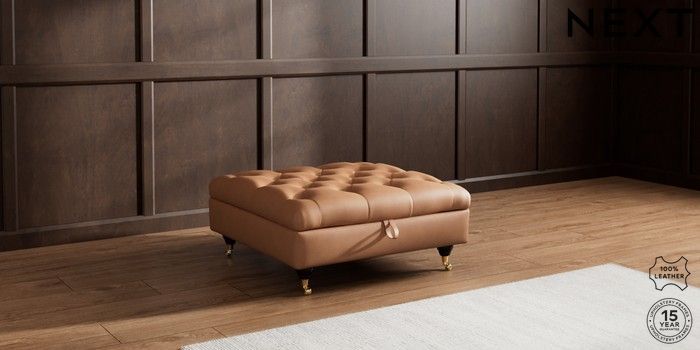 7.0.3 Buy Gosford Button Arm Leather Extra Large Storage Footstool Turin Leather Tan Brown Castor - Dark from the Next UK online shop Click here to use our accessible website