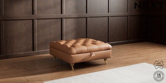 7.0.3 Buy Gosford Button Arm Leather Extra Large Storage Footstool Turin Leather Tan Brown Castor - Light from the Next UK online shop Click here to use our accessible website