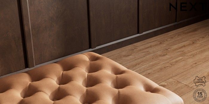 7.0.3 Buy Gosford Button Arm Leather Extra Large Storage Footstool Turin Leather Tan Brown Castor - Mid from the Next UK online shop Click here to use our accessible website