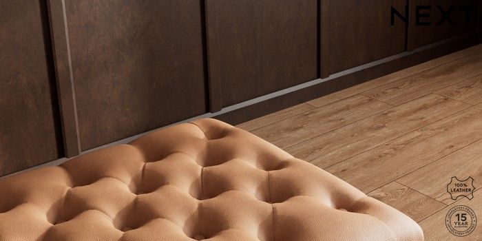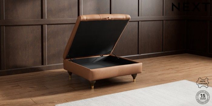 7.0.3 Buy Gosford Button Arm Leather Extra Large Storage Footstool Turin Leather Tan Brown Modern Turned Metal Cap - Mid from the Next UK online shop Click here to use our accessible website