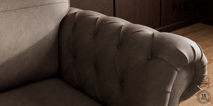 7.0.3 Buy Gosford Button Arm Leather Snuggle Antiqued Leather Dark Brown Low Turned - Light from the Next UK online shop Click here to use our accessible website