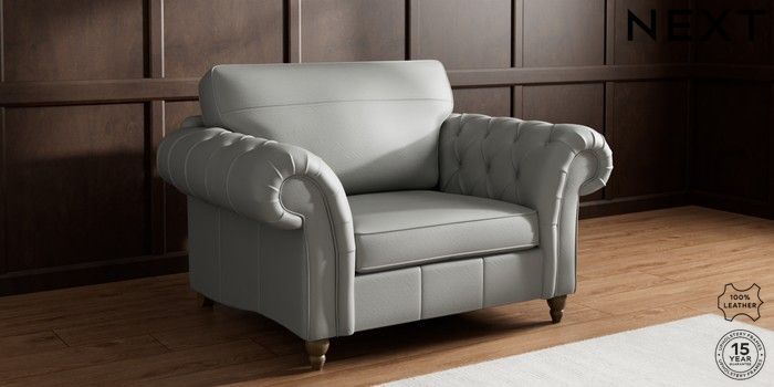7.0.3 Buy Gosford Button Arm Leather Snuggle Columbia French Grey Low Turned - Mid from the Next UK online shop Click here to use our accessible website