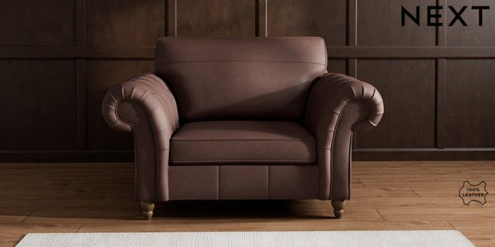 6.12.1 Buy Gosford Button Arm Leather Snuggle Rustic Leather Dark Brown Low Turned - Mid from the Next UK online shop Click here to use our accessible website