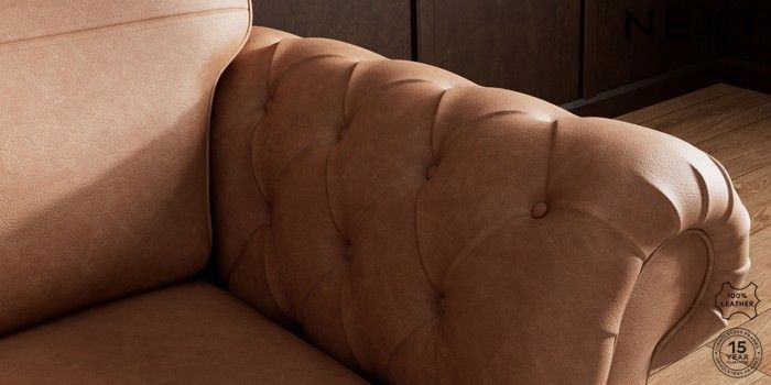 7.0.3 Buy Gosford Button Arm Leather Snuggle Rustic Leather Light Brown Low Turned - Light from the Next UK online shop Click here to use our accessible website
