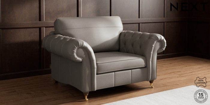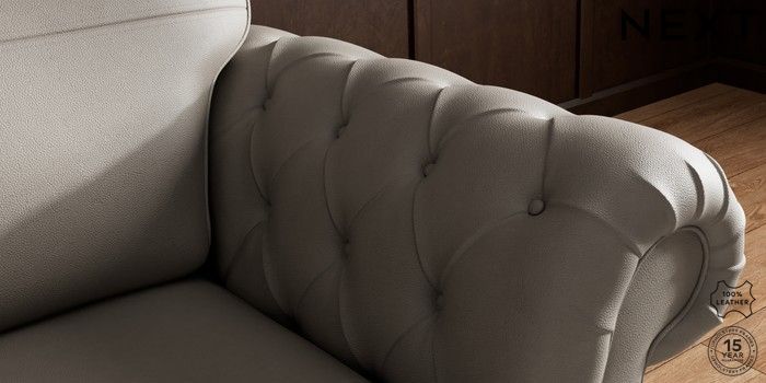 7.0.3 Buy Gosford Button Arm Leather Snuggle Turin Leather French Grey Castor - Mid from the Next UK online shop Click here to use our accessible website
