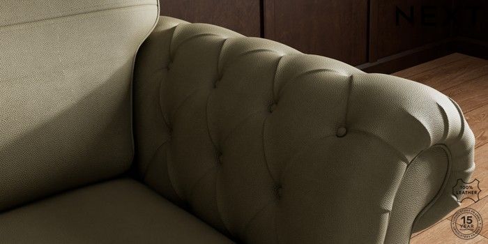7.0.3 Buy Gosford Button Arm Leather Snuggle Turin Leather Moss Green Castor - Dark from the Next UK online shop Click here to use our accessible website