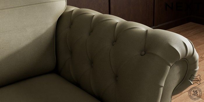 7.0.3 Buy Gosford Button Arm Leather Snuggle Turin Leather Moss Green Modern Turned Metal Cap - Mid from the Next UK online shop Click here to use our accessible website