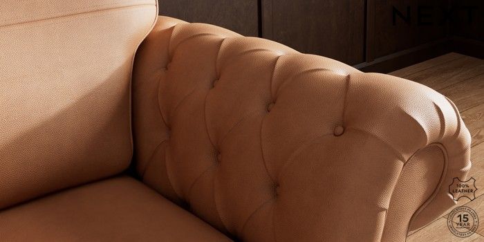 7.0.3 Buy Gosford Button Arm Leather Snuggle Turin Leather Tan Brown Castor - Mid from the Next UK online shop Click here to use our accessible website