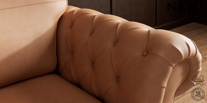 7.0.3 Buy Gosford Button Arm Leather Snuggle Turin Leather Tan Brown Modern Turned Metal Cap - Mid from the Next UK online shop Click here to use our accessible website