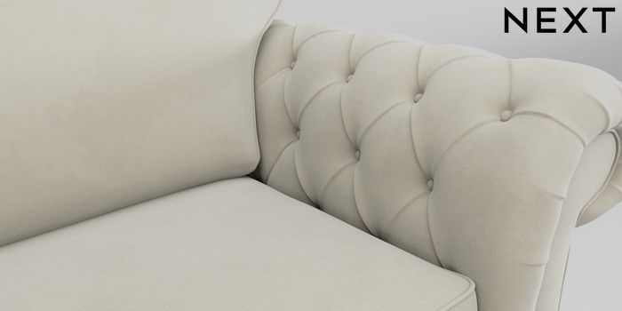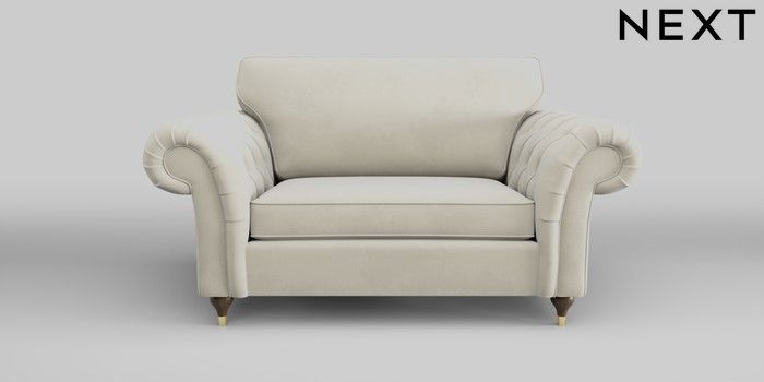 7.0.3 Buy Gosford Highback II Deep Sit 2 Seater Small Sofa Luxe Chenille Oyster Modern Turned Metal Cap - Mid from the Next UK online shop Click here to use our accessible website
