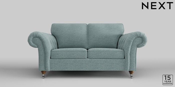 6.11.8 Buy Gosford Highback II Deep Sit 2 Seater Sofa Chunky Chenille Light Teal Green Chrome Castor - Standard from the Next UK online shop Click here to use our accessible website