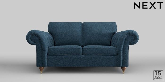 6.12.1 Buy Gosford Highback II Deep Sit 2 Seater Sofa Cotswold Chenille Dark Blue Modern Turned Metal Cap - Mid from the Next UK online shop Click here to use our accessible website
