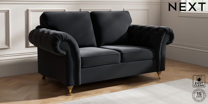 7.2.5 Buy Gosford Highback II Deep Sit 2 Seater Sofa Plush Velvet Easy Clean Charcoal Grey Castor - Light from the Next UK online shop Click here to use our accessible website