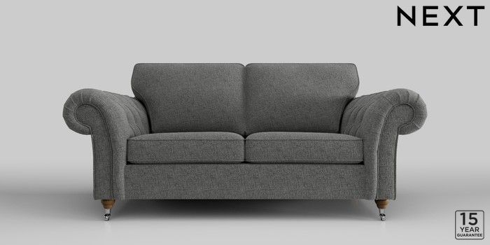 6.11.4 Buy Gosford Highback II Deep Sit 3 Seater Small Sofa Chunky Chenille Dark Grey Chrome Castor - Standard from the Next UK online shop Click here to use our accessible website