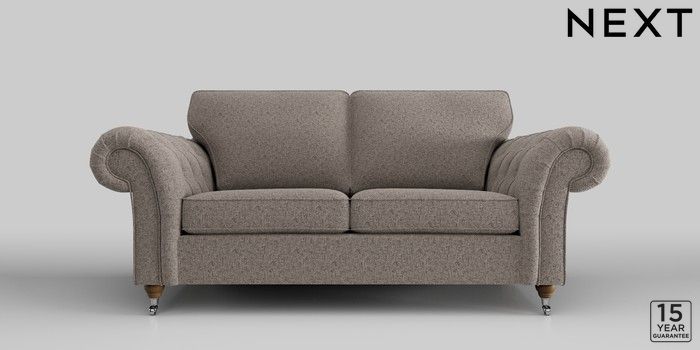 6.11.4 Buy Gosford Highback II Deep Sit 3 Seater Small Sofa Chunky Chenille Mink Brown Chrome Castor - Standard from the Next UK online shop Click here to use our accessible website