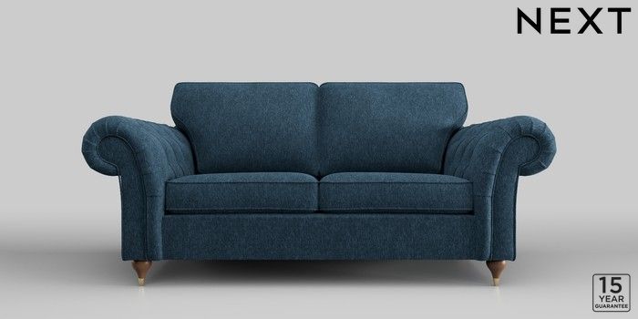 6.12.1 Buy Gosford Highback II Deep Sit 3 Seater Small Sofa Cotswold Chenille Dark Blue Modern Turned Metal Cap - Mid from the Next UK online shop Click here to use our accessible website