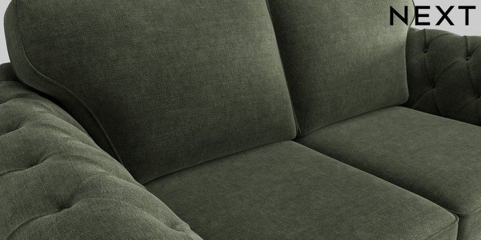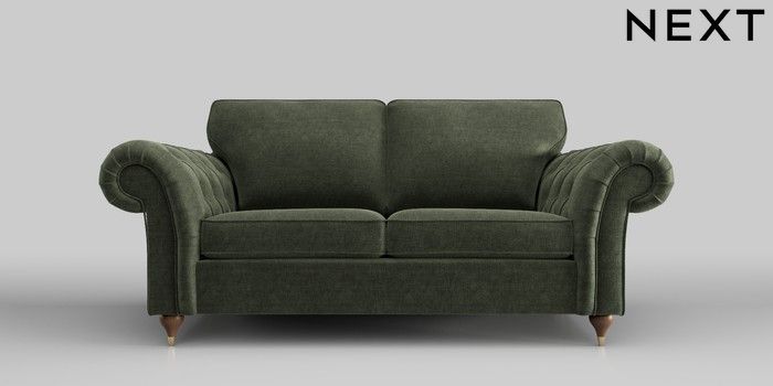 6.12.1 Buy Gosford Highback II Deep Sit 3 Seater Small Sofa Luxe Chenille Mid Green Modern Turned Metal Cap - Mid from the Next UK online shop Click here to use our accessible website