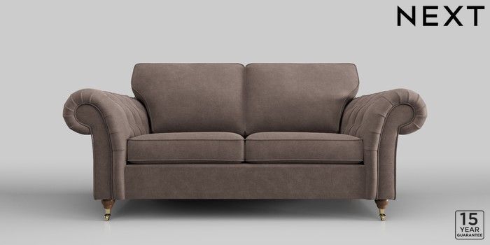6.12.1 Buy Gosford Highback II Deep Sit 3 Seater Small Sofa Luxe Chenille Mink Brown Castor - Mid from the Next UK online shop Click here to use our accessible website